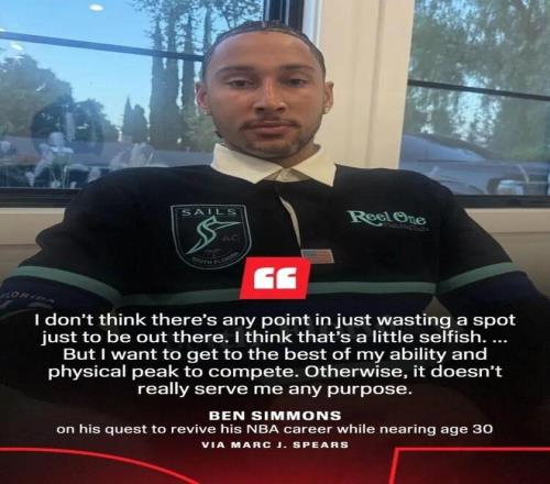 在接受名记 Spears 的专访时,西蒙斯也详细阐述了自己暂缓回归 NBA 的考量。