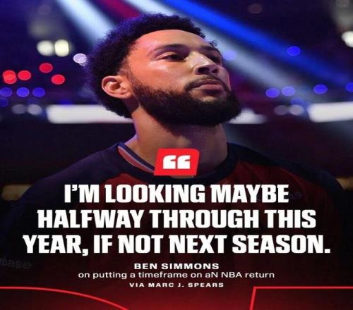 对于重返 NBA 的时间表,西蒙斯给出了相对明确的预期:“我预计可能是在本赛季中期,最晚下个赛季,这取决于我在接下来一个月左右的时间里能恢复得如何,但我感觉很好,没有任何反复。”