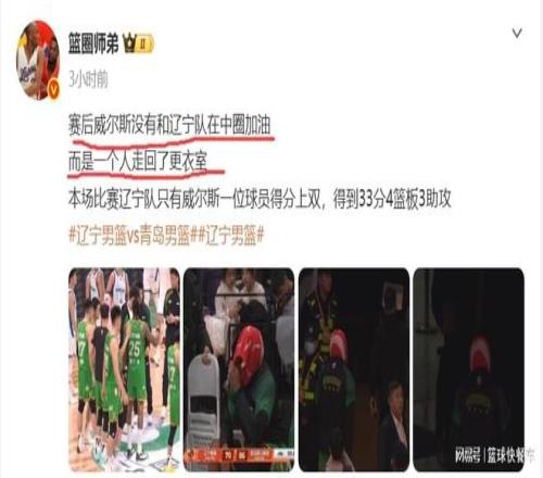 而在辽宁队输球后,根据知情人士透露,威尔斯在赛后并没有留下来,而是直接走人回到更衣室。按照CBA一贯的惯例,球员在赛后都会在中圈附近围成一群,互喊加油的。可这一次,威尔斯却选择直接走人,可以想象得到,这一战他打得有多么的无助与郁闷。而从这一场惨败,我们也疑似感受到,辽篮内部可能已经发生内讧了。如果辽宁队还是这么低迷下去的话,杨鸣恐怕离下课就不远了。
