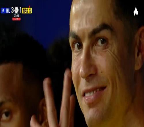 当比分变为2-1后,主帅热苏斯选择换下C罗。离场瞬间,C罗对换人颇感惊讶。起初,外界以为他是对被换下不满。但随后的发展表明,他的愤怒显然指向裁判——尤其是当利雅得新月在比赛尾声再次获得一粒点球并罚进后,C罗坐在替补席上,面对转播镜头露出一抹讽刺的微笑,并转动手指,做出了一个手势。