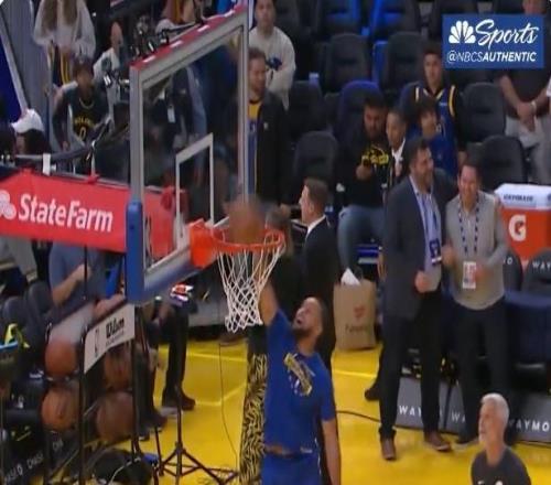 雷速体育10月28日宣 NBA常规赛继续进行,勇士今天在主场迎战灰熊。赛前,湾区媒体晒出库里热身时空接暴扣的视频。 给库里这个扣篮打几分?